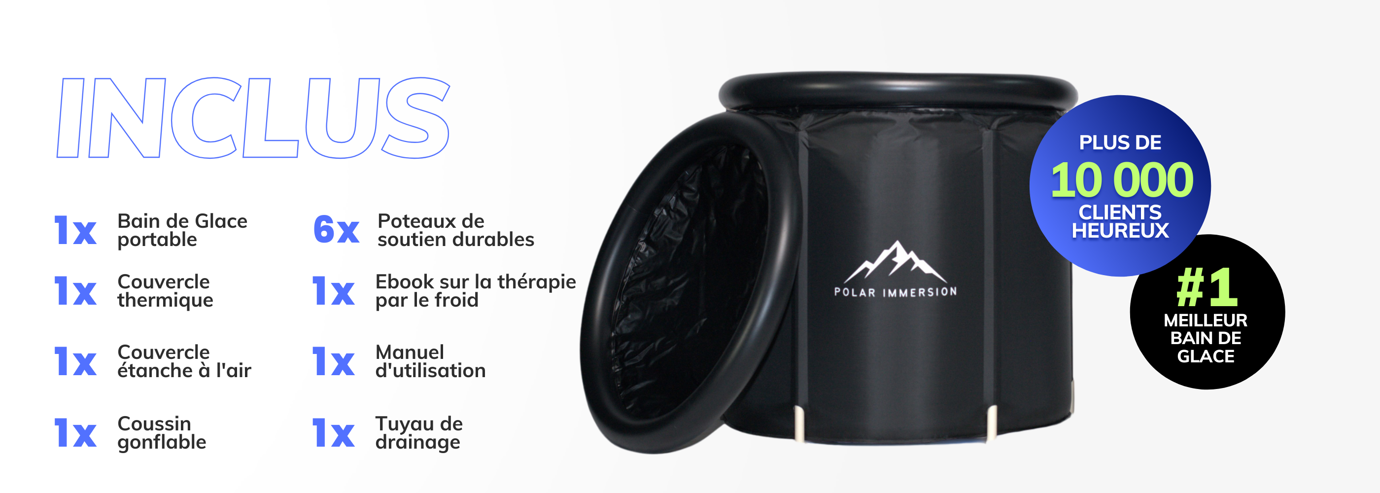 Notre bain de glace est livré avec un couvercle thermique gonflable qui est idéal pour garder l'eau aussi froide que possible.