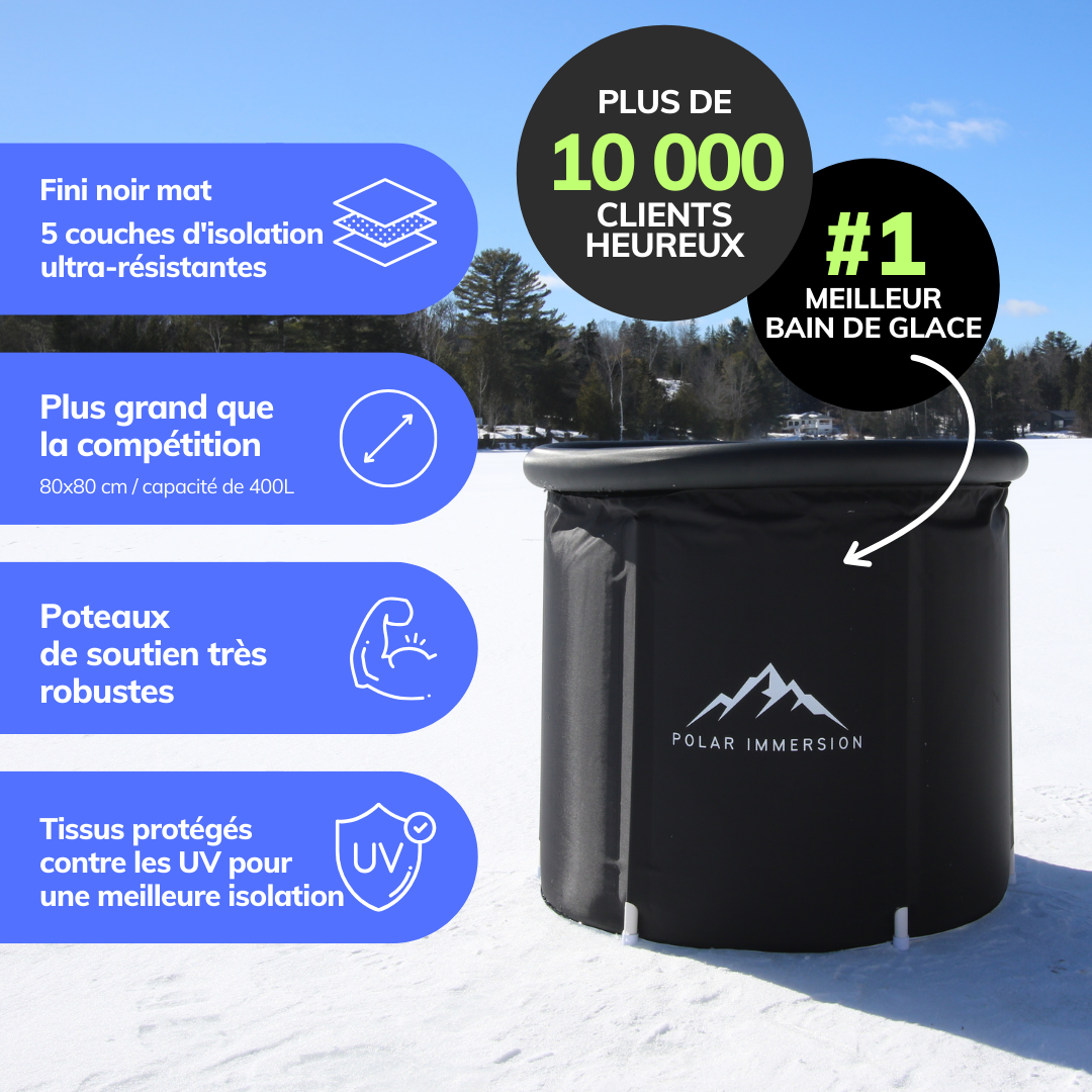 Oui. Notre Bain de Glace est fabriqué avec du plastique PVC isolé et du tissu en nylon protégé contre les UV pour garantir que votre eau reste froide pendant de longues périodes.